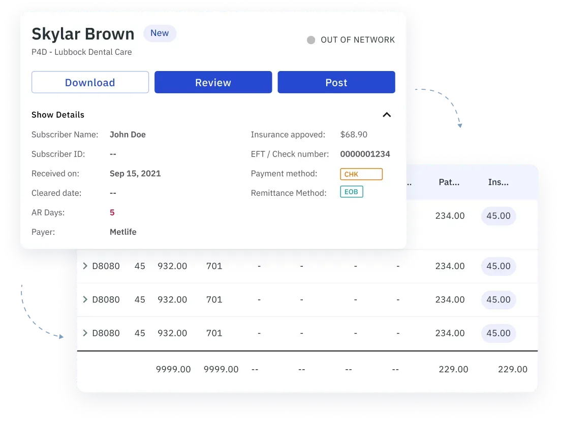 Automated EOB/ERA delivery and reconciliation + AI-driven parsing from EOBs